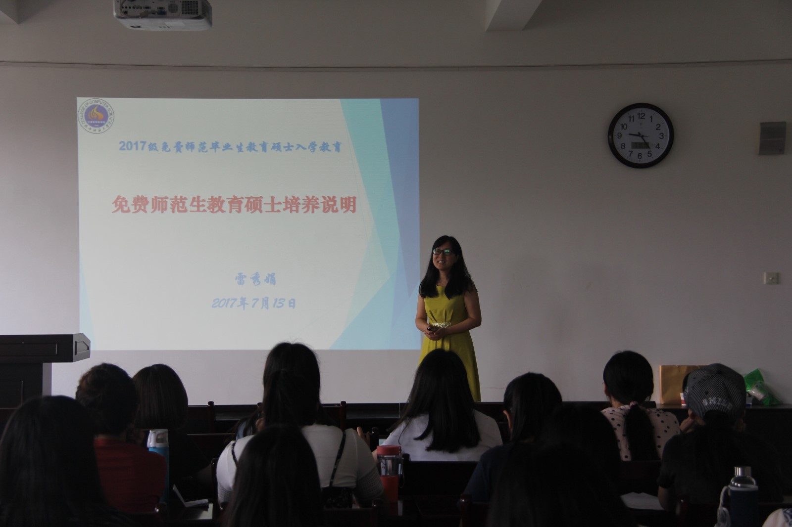 随后,由雷秀娟副院长对学生进行了入学教育,她向同学们详细介绍了本专业的课程开设情况及培养方案,并就同学们普遍关心的具体问题如导师配备、授课方式、论文撰写及答辩等一一讲解。她诚恳地建议同学们珍惜学习机会,以高度的责任感对待此次课程学习。