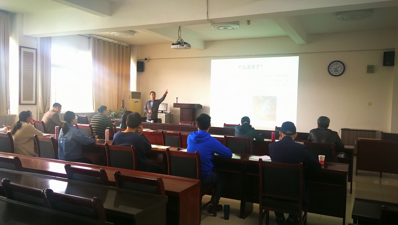 在同志们的热烈掌声中,席政军教授开始了题为“量子计算就在你身边”的讲述,报告回顾了量子信息的发展、量子力学的历史人物、计算机学科的发展,回答了量子计算就是为了解决经典计算中的困难问题、提升计算力、为科技发展提供有力支持,并介绍了量子计算的最新进展。席老师讲得生动有趣,同志们听得津津有味。报告结束后,董春生总结指出,席老师的报告内容丰富,讲解通俗易懂,使同志们对量子力学的历史、发展及应用有了进一步的了解和认识,使同志们增长了知识、开阔了视野,从中受益匪浅。